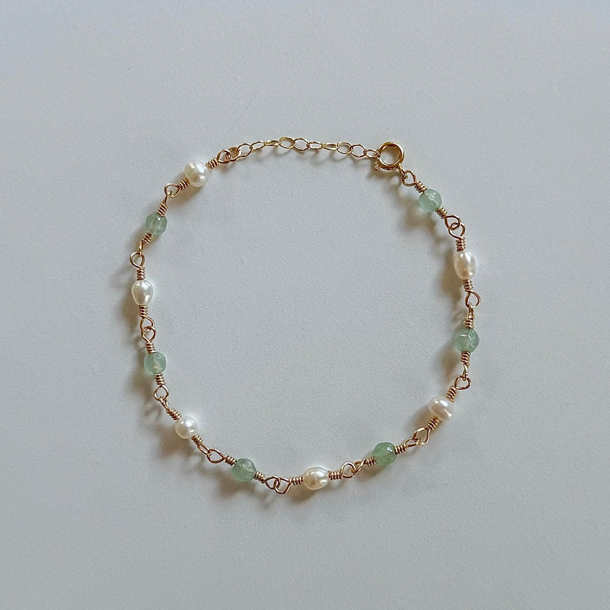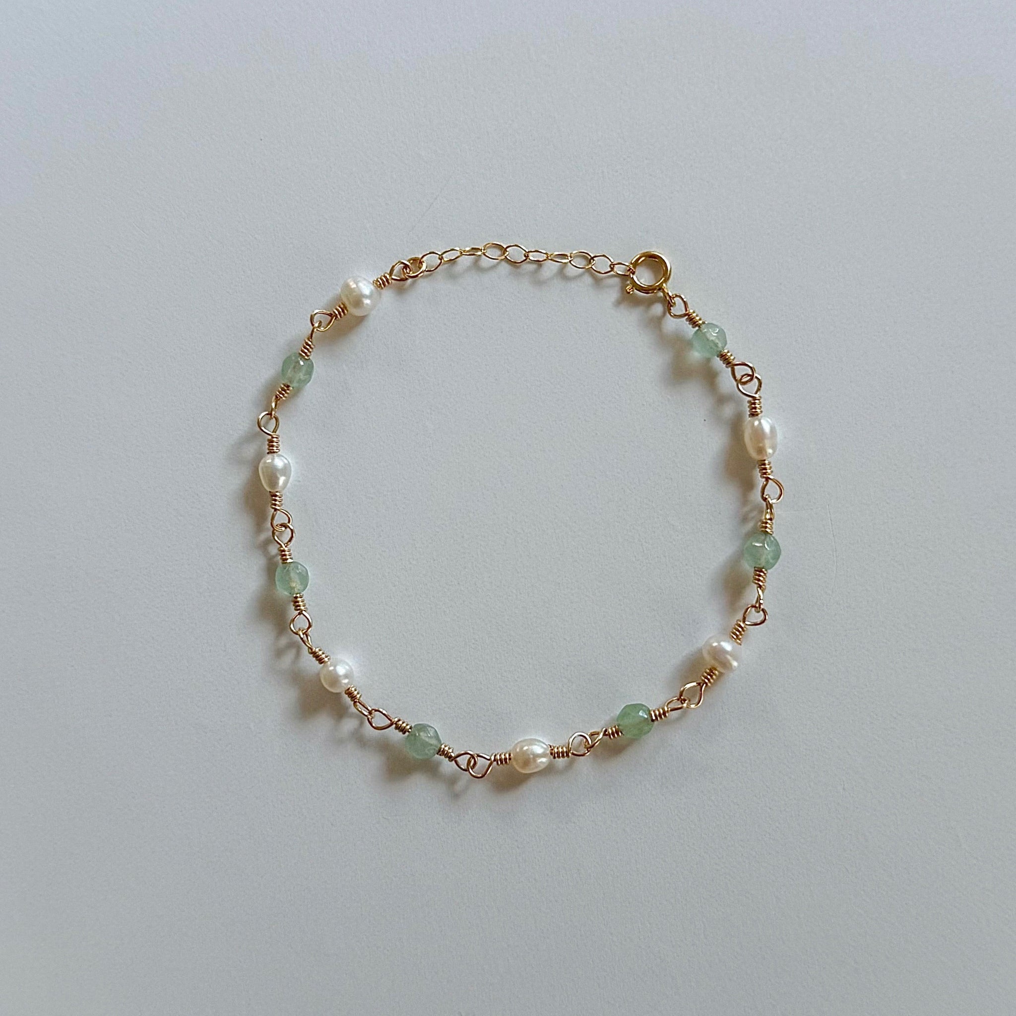 14k gold filled wire, authentic freshwater pearls and green aventurine beads.
