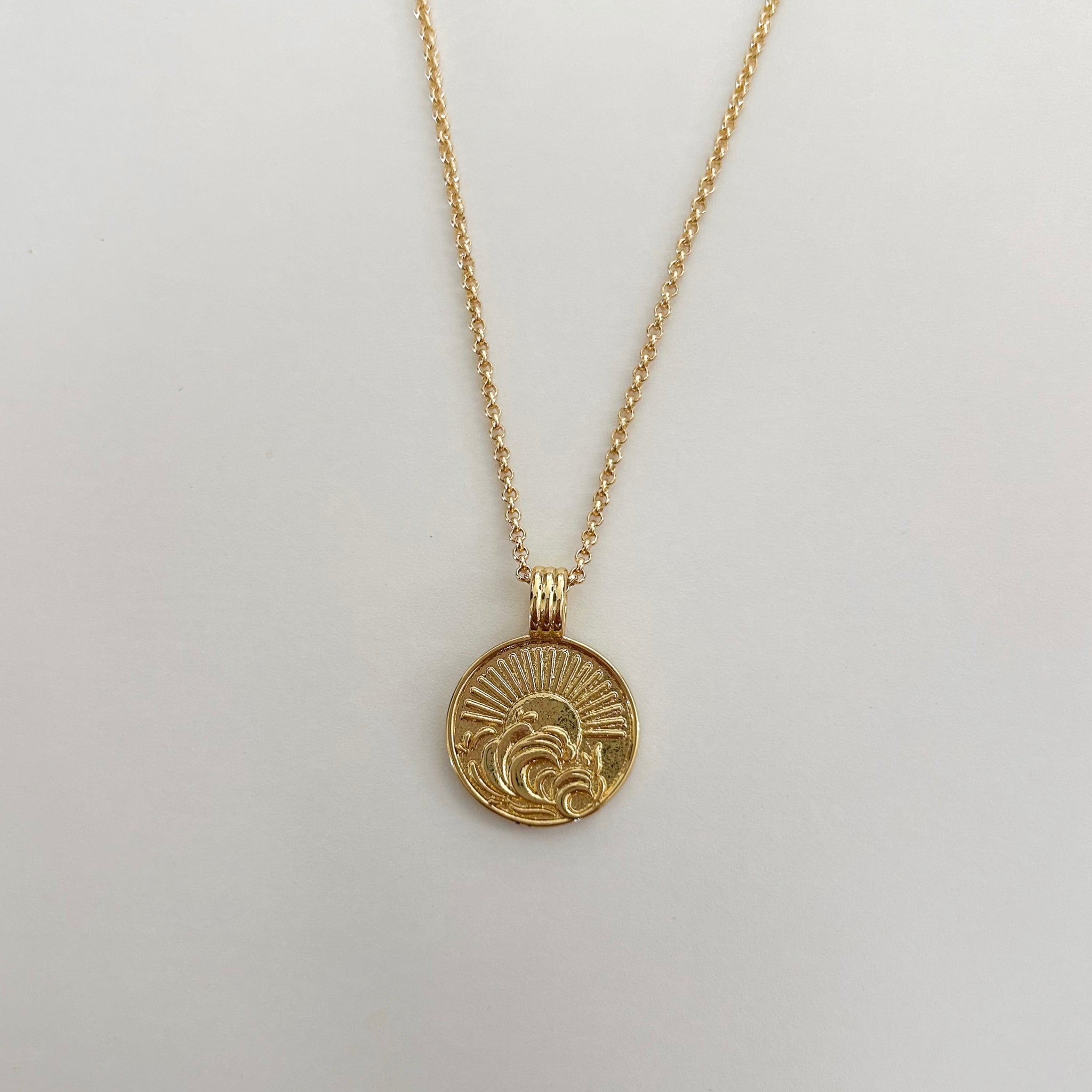 Ocean pendant measures 23.9mm x 18mm. Rollo chain measures 2mm wide.